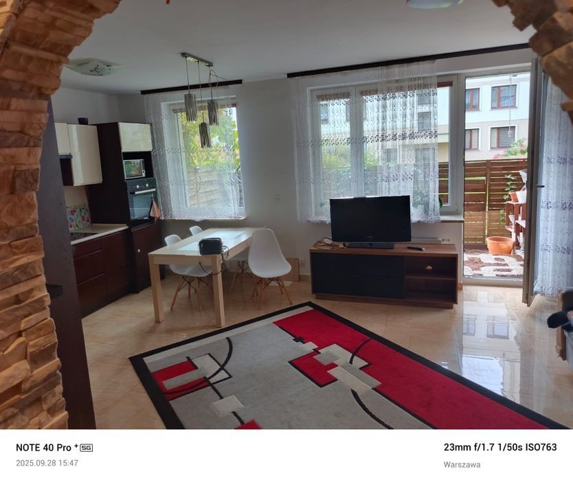Witam Sprzedam słoneczne mieszkanie usytuowane na wysokim parterze o powierzchni 48,4m2 + 31m2 ogródka na Warszawskim Tarchominie przy ul. Mariana Wyrzykowskiego 5a. Składa się ono z : • duży salon z aneksem kuchennym 25m2 z meblami w zabudowie - wyposażony we wszystkie sprzęty firmy bosch. Z salonu wychodzimy na duży ogródek, który ciągnie się przez całą długość mieszkania. • przestronna sypialnia 13m2 • korytarz 6m2 • duża łazienka 5m2 Mieszkanie znajduje się na zadbanym zielonym Osiedlu Palladium położonym w pobliżu lasu i otoczonym dużą ilością zieleni zarówno poza osiedlem jak i bezpośrednio na nim. Strzeżone i monitorowane całodobowo. Budynek wybudowany w 2015 roku posiada windę oraz miejsce postojowe w garażu podziemnym. ( winda podjeżdża z garażu pod same drzwi do mieszkania). Okna wychodzą na patio - na stronę południowo-zachodnią. Mieszkanie jest odświeżone gotowe do zamieszkania. W pobliżu osiedla znajdują się szkoły i przedszkola oraz sklepy Biedronka i galeria pod dębami. Autobus ok 10 min spacerkiem. Droga wzdłuż lasu dojdziemy do ul. Swiatowida gdzie znajduje się zajezdnia tramwajowa - dojazd do M Mlociny 15 min. Do mieszkania przynależy dodatkowo: •miejsce w garażu podziemnym •komórka lokatorska Zapraszam zainteresowane osoby do kontaktu i oględzin. POŚREDNIKA i AGENCJA bardzo dziękuję. Sprzedaż bezpośrednia za gotówkę lub w kredycie. Telefon kontaktowy: • 51*******40
