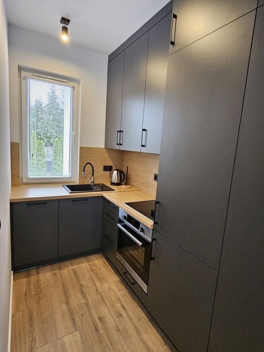Apartament przy ul. Tadeusza Kościuszki w Legionowie Apartament dostępny od stycznia Lokal położony jest na parterze (budynek 2-piętrowy, bez windy, budynek z 2025r, zapewnione miejsce postojowe dla jednego auta, teren zamknięty) Apartament składa się z: salonu z rozkładaną kanapą, komoda, tv, ławostół, szafa w pełni wyposażona kuchnia (lodówka, piekarnik,zmywarka, płyta ceramiczna, przybory kuchenne- talerze, garnki, szklanki itd.) łazienka z prysznicem walk-in, pralką sypialnia z rozkładaną kanapą, szafa taras, meble ogrodowe, altana ogrodowa Budynek znajduje się w idealnej lokalizacji: - stacja Legionowo Przystanek 600m (8min pieszo) - żabka/delikatesy ABC/poczta/pizzeria/sushi (700m - 10min pieszo) - Lidl/Rossmann/Aldi - (2,1km - 4min autem) Mieszkanie bezczynszowe Koszt najmu 2700zł + 28zł opłata za odpady za 1os + 62zł tv+internet + według zużycia woda, gaz, prąd (ogrzewanie gazowe podłogowe) Kaucja w wysokości 3000zł W mieszkaniu całkowity zakaz palenia, bez zwierząt. Kontakt telefoniczny.