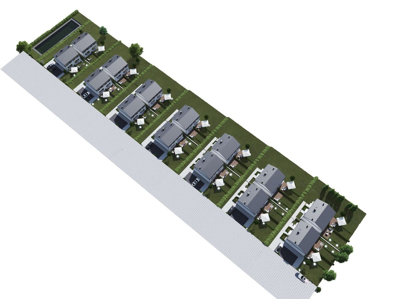 W atrakcyjnej lokalizacji domów jednorodzinnych zlokalizowaliśmy naszą nową inwestycję w Różynach. Osiedle domów jednorodzinnych w zabudowie bliźniaczej, zlokalizowane jest przy ul. Młyńskiej, w zacisznej okolicy zapewniającej niezakłócony wypoczynek, jednocześnie pozostawiając atrakcje i niezbędne sklepy/usługi na wyciągnięcie ręki. Aby jak najbardziej uatrakcyjnić Państwu tą lokalizację, planujemy wykonanie na terenie osiedla małego stawku umożliwiającego wypoczynek dla przyszłych właścicieli lokali.