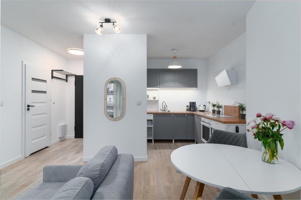 Do wynajęcia umeblowane i przytulne 2-pokojowe mieszkanie w nowym, oddanym w 2022 roku osiedlu -Grodzieńska 19. Inwestycja otrzymała nagrodę prezydenta miasta Warszawa za najlepszą architekturę mieszkaniową (projekt TZA Architekci). Mieszkanie ma 41 m2 i znajduje się na pierwszym piętrze. Składa się z pokoju dziennego połączonego z kuchnią (częściowo oddzieloną) i sypialnią z wyjściem na balkon Ok 5m2. W łazience jest wanna i pralka z suszarką na pranie. Mieszkanie jest umeblowane i wyposażone, tak jak jest to widoczne na zdjęciach. Do mieszkania przynależy miejsce postojowe pod nr 48 na platformie w garażu podziemnym, widoczne w galerii. Oferta dotyczy najmu mieszkania wraz z miejscem postojowym. W pobliżu mieszkania znajduje się centum handlowo-usługowe Koneser, a po drugiej str. Al Solidarności metro Szwedzka i ulica Stalowa, popularne miejsce spotkań, atrakcja turystyczna i zagłębie streetartu. Do Warszawa Wileńska Ok 15 min na pieszo. W pobliżu znajduje się także dworzec Warszawa Wschodnia. Przystanek Śnieżna i Szwedzka. Telewizja smart tv z podstawowymi kanałami i Internet we własnym zakresie. Po wliczeniu opłat w czynsz najmu Ok 4,2 tys PLN/msc. Miejsce garażowe znajduje się na platformie, która porusza się prawo-lewo. Zapraszam do zapoznania się z ofertą na żywo : ) OFERTA BEZPOŚREDNIA Dziękuję pośrednikom.