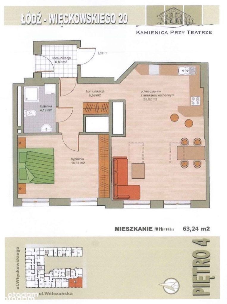 WYNAJMIJ STYLOWE MIESZKANIE W CENTRUM ŁODZI! ul. Więckowskiego 20 - Kamienica Przy Teatrze Cena: 2 000 zł/mies. + opłaty (ok. 1 000 zł + media) Zamieszkaj w sercu Łodzi - tu, gdzie historia spotyka nowoczesność! Do wynajęcia eleganckie, przestronne mieszkanie o powierzchni 63,24 m², położone na 4. piętrze z windą, w stylowo odrestaurowanej Kamienicy Przy Teatrze przy ul. Więckowskiego 20. To nie tylko doskonała lokalizacja, ale także wyjątkowe miejsce do życia - z zielonym, cichym patio, windą, portiernią i wysokim standardem wykończenia części wspólnych. Dodatkowo: komórka lokatorska (2,49 m²) - świetna na rzeczy sezonowe Lokal gotowy do wprowadzenia Drewniane okna, marmurowe parapety Antywłamaniowe drzwi, ciepło i woda z sieci miejskiej Wysoki standard, prestiżowa kamienica po kapitalnym remoncie (2009) Winda, zielone patio, całodobowa portiernia z dozorem Komórka lokatorska w cenie Dzięki temu to idealna oferta zarówno dla singla, pary, jak i osób pracujących zdalnie, które cenią miejski styl życia, komfort i bliskość wszystkiego, co ważne.