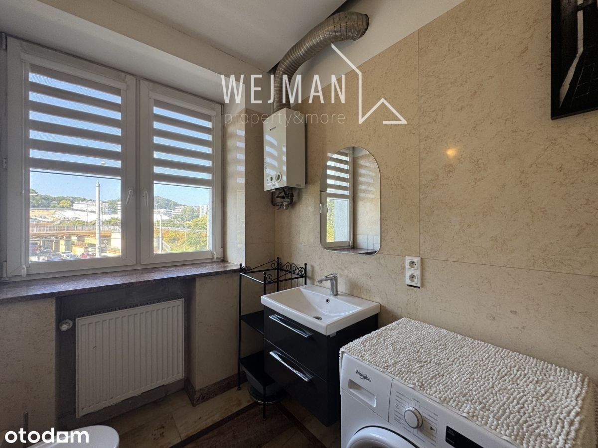 Mieszkanie położone w ścisłym centrum Gdyni, dzięki czemu w zasięgu kilku do kilkunastu minut spacerem dotrzemy do wielu istotnych i atrakcyjnych punktów Gdyni. Park Centralny, Urząd Miasta, Teatr Miejski, Uniwersytet Gdański czy Kamienna Góra to 5 minut drogi. Do Bulwaru Nadmorskiego, plaży dotrzemy w 10 minut. W pobliżu znajdują się ścieżki spacerowe, rowerowe, korty tenisowe czy hale sportowe i widowiskowe. W pobliżu mamy Centrum Handlowe Riviera jak i słynne U7 do autobusu, trolejbusu czy kolejki podmiejskiej dzieli nas kilkaset metrów. W okolicy mamy dużo dobrych barów, pubów dobrej gastronomii. Marszem dotrzemy do najlepszych w Polsce Liceum III i VI oraz do wyższych uczelni. W okolicy znajdują się Centra Biznesowe i Biurowe jak i wspomniane urzędy. Mieszkanie dzięki ładnemu i funkcjonalnemu układowi idealnie nadaje się dla rodziny gdzie strefy rodziców i dzieci są oddzielone dając dodatkowy komfort. Mieszkanie dwustronne z dwoma balkonami z których ten znajdujący się w salonie z aneksem kuchennym wychodzi na ładny zadrzewiony dziedziniec. Mieszkanie idealnie nadaje się na second home z możliwością komfortowego pobytu w Gdyni czy nad morzem, lokalizacja predysponuje je do bycia mieszkaniem inwestycyjnym pod wynajem krótko i długoterminowy. Kancelaria, gabinety i inne funkcje usługowe znalazłyby tu też doskonałe położenie dając komfort klientom czy pacjentom dojazdu samochodem czy komunikacją miejską. Mieszkanie posiada ładny salon z aneksem kuchennym z przechodnią sypialnią. Dwa dodatkowe pokoje szeroki korytarz i łazienka to pozostałe pomieszczenia. Jeden z pokoi z racji swoich rozmiarów może być dodatkowo podzielony na dwa mniejsze co zwiększyłoby układ do 5 pokoi. Kuchnia jest nowa i zamontowania pod koniec 2024 roku, mieszkanie odświeżone gotowe do wprowadzenia. Wiele elementów jak podłogi, blaty czy wykończenie łazienki to marmur i granit. Do mieszkanie przynależy spora piwnica. Klatka schodowa i budynek są bardzo zadbane o dobrze zarządzane.