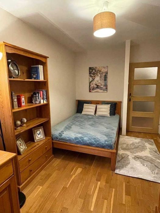 WYNAJMĘ! KTO: Właściciel (wynajem bezpośredni, bez prowizji dla agencji) CO: Do wynajęcia komfortowe mieszkanie zlokalizowane na Mokotowie, przy ul. Ludwika Idzikowskiego 2. Mieszkanie o powierzchni 62m2 składa się z: 3 oddzielnych, zamykanych na klucz pokoi, kuchni, łazienki, wc, balkonu. Do mieszkania przynależy piwnica oraz miejsce parkingowe na strzeżonym parkingu zewnętrznym. Mieszkanie jest w pełni umeblowane, mieści się na 2 piętrze (Blok posiada 3 piętra). Mieszkanie znajduje się na zamkniętym osiedlu z dużą ilością zieleni wokół. Całodobowa ochrona, plac zabaw, boiska: koszykówka, piłka nożna, tenis. Bardzo dobrze zlokalizowane: blisko do przystanku autobusowego (3 min), niedaleko centrum handlowego Sadyba Best Mall, blisko Jeziorko Czerniakowskie. W okolicy: sklepy spożywcze, cukiernia, kwiaciarnia, apteka, fryzjer, pralnia, stomatolog, bankomat, kościół. Mieszkanie świeżo po małym remoncie. ROZKŁAD I WYPOSAŻENIE: • sypialnia 1 /salon - duża rozkładana sofa z miejscem do spania dla dwóch osób, drewniane meble: rozkładany stół, 6 krzeseł, duża szafa, dwie witryny, komoda; z salonu wyjście na balkon • sypialnia 2 - łóżko z materacem dla dwóch osób, szafa, szafka rtv, szafka na książki, biurko • sypialnia 3 - łóżko, stolik, komoda, szafa (jest miejsce na łóżko w ramie szerokości 140cm) • kuchnia - meble drewniane: dużo szafek, witryna, stół, lodówka (nowa), piekarnik, płyta gazowa, mikrofala, zmywarka • łazienka - duża wanna, umywalka z szafką, szafki wiszące, pralka • wc - oddzielne z umywalką • przedpokój - duża, drewniana szafa, lustro • podłogi w pokojach drewniane • cenie najmu piwnica i wózkarnia zamykana na klucz; do mieszkania przypisane jest miejsce parkingowe (na strzeżonym parkingu zewnętrznym) OPŁATY: • 3900 zł/miesiąc (w cenie miejsce parkingowe na strzeżonym parkingu, piwnica) + czynsz administracyjny ok. 1150zł + opłaty licznikowe: prąd (ok. 120zł) oraz woda, ogrzewanie (ponadnormatywne zużycie) • Kaucja: 4500zł OD KIEDY: • od zaraz WARUNKI • umowa najmu na rok • preferowane własne OC najemcy • mieszkanie idealne dla pary, dwóch lub 3 osób (3 oddzielne, zamykane pokoje) • zapraszamy osoby niepalące, bez zwierząt Kontakt: 50*******84 (proszę o sms lub kontakt telefoniczny celem umówienia oglądania mieszkania).