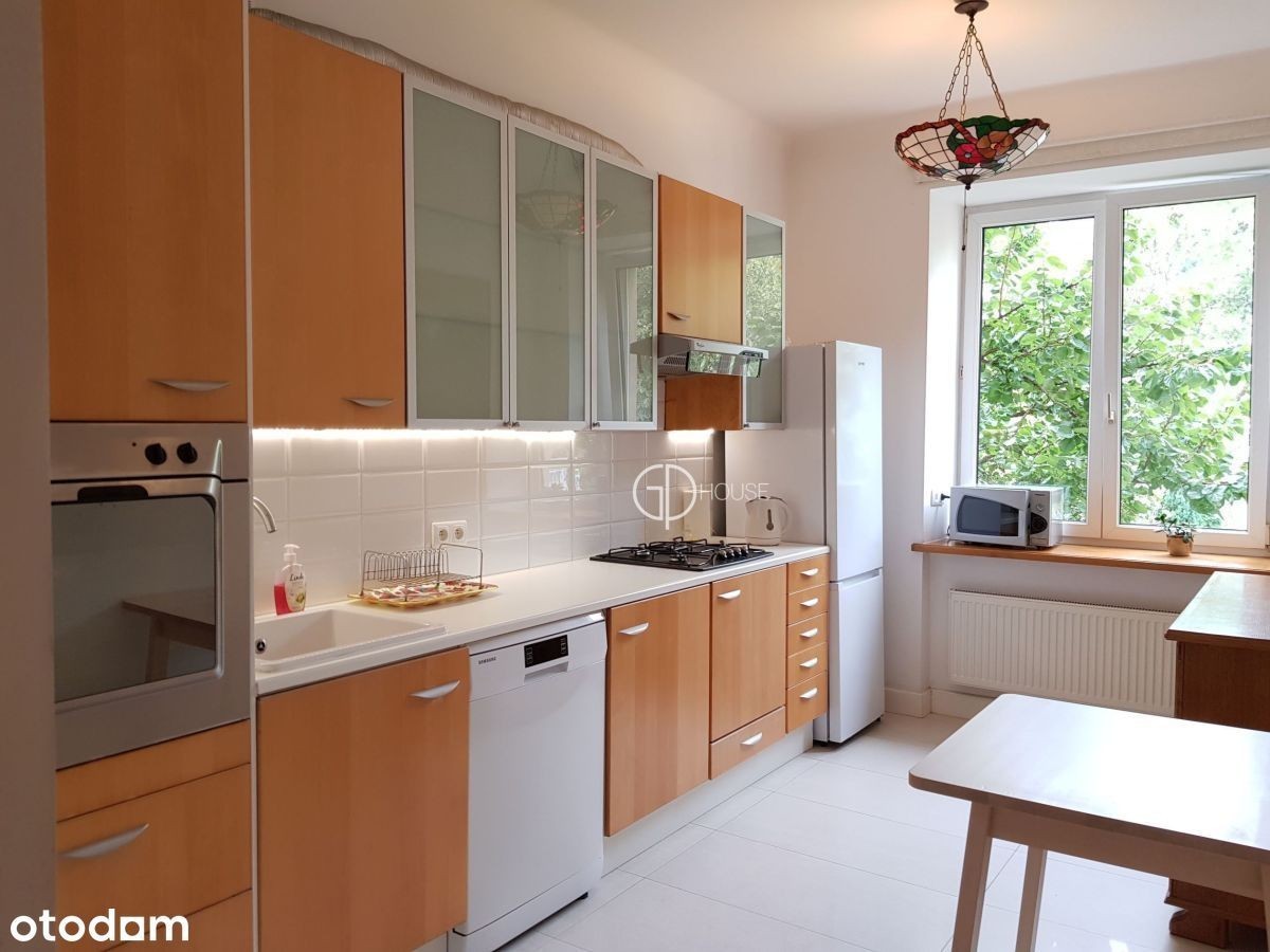 Mieszkanie w kamienicy po generalnym remoncie położone w starej części Saskiej Kępy. Mieszkanie o powierzchni 80m2, znajduje się na 1szym piętrze z tarasem. Apartament składa się z przedpokoju, w pełni wyposażonej kuchni z częścią jadalną, przestronnej sypialni z zabudowaną szafą, dwuczęściowego salonu z częścią biurową (który może być również wykorzystywany jako pokój gościnny), dostępu do dużego tarasu z widokiem na zieleń, 1 łazienki (z prysznicem i pralką). Mieszkanie częściowo umeblowane (łóżko i sofa nie są zapewnione). Bardzo dobra lokalizacja w pobliżu znajduje się Liceum i przedszkole francuskie, sklepy, restauracje i kawiarnie. Czynsz najmu +zaliczka na media (woda, gaz : ogrzewanie i c.w., prąd) w wysokości 400 zł/mies. Wolne od 01/2026 r. The flat is on the 1rst floor. Located in the heart of Saska Kępa, a few meters from the shops, restaurants, schools, the French Lycee. The flat includes a hall, a kitchen with dining area, a large bedroom with wardrobe, a livingroom in 2 parts (the second part can suit as a study area or guest room), acces to a large terrace with view on greenery. Partially furnished flat (bed and sofa not provided). Rental price + advance payment for utilities (water, gas : heating and cw, electricity) of 400 PLN/month.AVailable from 01.2026. Appartement de 80m2 situe au 1er etage. Situe au coeur du vieux Saska Kępa, a deux pas des commerces, restaurants, des ecoles francaises. L'appartement comprend un hall, une cuisine equipee avec coin repas, une chambre spacieuse avec armoire integree, un salon en deux parties avec un espace bureau (qui peut egalement servir de chambre d'amis), l'acces a une grande terrasse avec vue sur la verdure, 1 salle de bains (avec douche et lave-linge). Appartement partiellement meuble (lit et canape non fournis). Loyer + avance sur les charges (eau, gaz : chauffage et eau chaude, électricité) de 400 PLN/mois. Disponible en 01.2026. Oferta 23670385 z systemu LocumNet-OnLine.