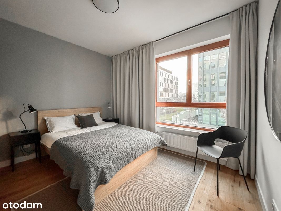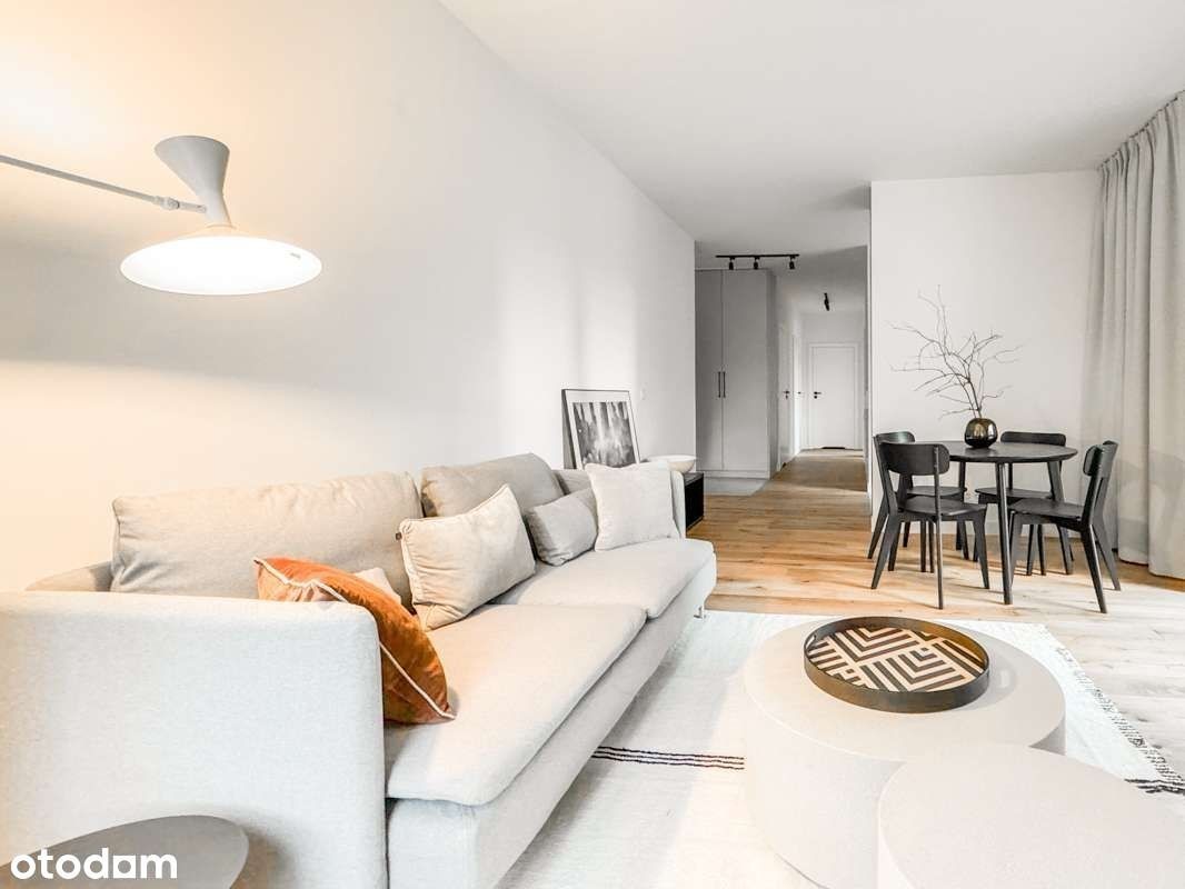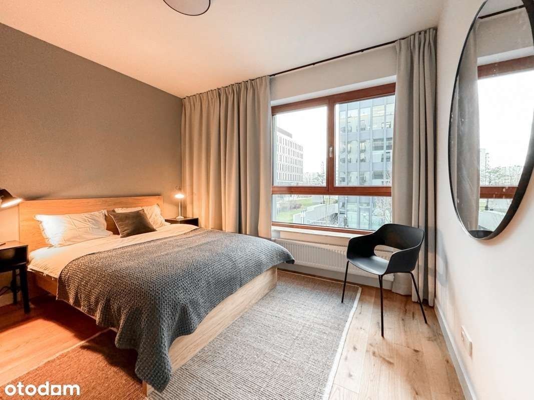 Atrakcyjny, pięknie zaprojektowany apartament z loggią do wynajęcia. Wysokiej klasy apartamentowiec Holm House 4 by Skanska. Wykończenie, projekt i nadzór architekta.