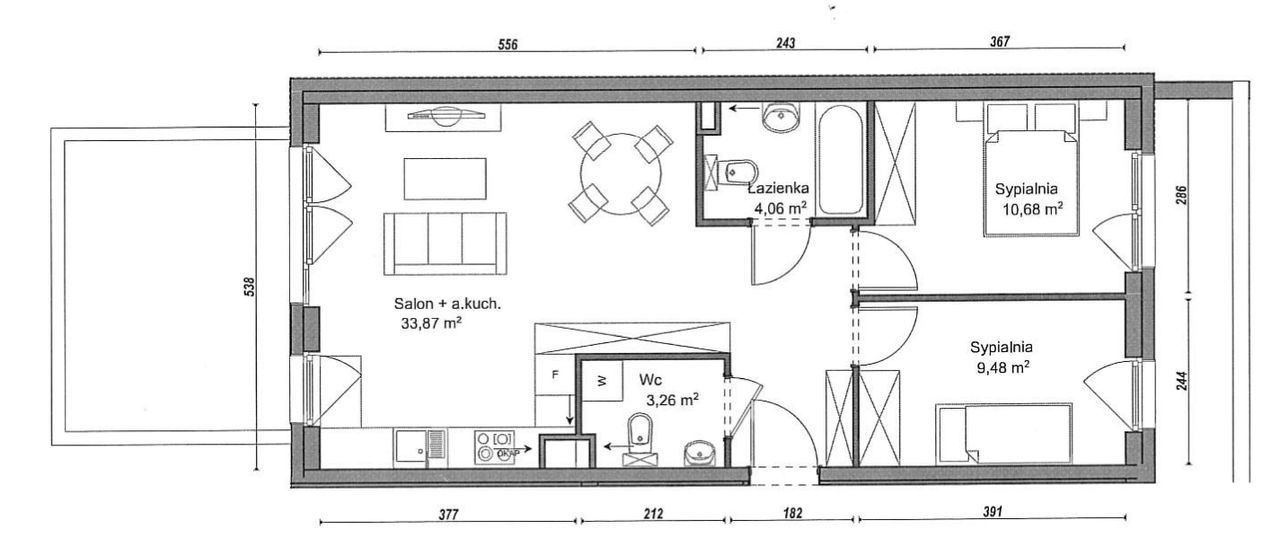 Mieszkania 3‑pokojowego 61 m² Ołtaszyn ul. Orawska - rok budowy 2025