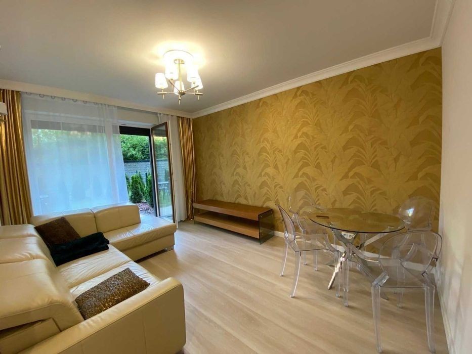 AKTUALNE Bezpośrednio. Do wynajęcia rewelacyjnie położone, piękne mieszkanie na Mokotowie - zaledwie 10 minut od Łazienek Królewskich. Znajduje się w eleganckim apartamentowcu przy ul. Zwierzynieckiej 8d, między ul. Czerniakowską a Polski Walczącej. Apartament składa się z: - przestronnego, nowocześnie urządzonego salonu - przytulnej, eleganckiej sypialni - w pełni wyposażonej kuchni - łazienki z WC oraz prysznicem - tarasu - ogrodu ok. 47 m2 (wyjście na taras z dwóch pomieszczeń: salonu, sypialni) W cenie zawarty jest garaż w parkingu podziemnym. Mieszkanie jest w pełni umeblowane i wyposażone: łóżko podwójne z pojemnikiem, szafa w sypialni, w salonie narożnik skórzany rozkładany z funkcją spania, stół z 4 krzesłami, komoda TV, w holu duża szafa z przesuwanymi drzwiami. Kuchnia w zabudowie. Do dyspozycji lokatorów będą wszystkie niezbędne do użytku codziennego sprzęty a mianowicie: pralko-suszarka, lodówka z zamrażarką, zmywarka, piekarnik, płyta indukcyjna, okap, czajnik elektryczny, garnki, sztućce, zastawa kuchenna, deska do prasowania. Całość wykończona w wysokim standardzie: klimatyzacja, podłoga panele winylowe w salonie i sypialni, eleganckie płytki z gresu w pozostałych pomieszczeniach, piękne tapety, drzwi bezprzylgowe z zamkami magnetycznymi, rolety antywłamaniowe, drzwi antywłamaniowe Dierre. Mieszkanie jest ciche i kameralne - cisza i spokój w centrum miasta. Znajduje się na parterze w budynku 7 piętrowym. Niewątpliwym atutem mieszkania są duże okna, przestronny taras i ogródek, które od wiosny do jesieni stanowią dodatkową przestrzeń wypoczynkową do wykorzystania przez najemców. Przy wejściu do klatki jest wózkownia i rowerownia. Na kameralnym patio znajduje się plac zabaw, ławki i dużo zieleni. Teren jest zamknięty - objęty monitoringiem i całodobową ochroną. Znajduje się tu liczna infrastruktura sklepów spożywczych (Biedronka, K&M, Żabka) i budowlanych, liczne usługi m.in zakłady fryzjerskie, poczta i restauracje oraz szkoła i przedszkole w pobliżu. Bliskie sąsiedztwo parków (Łazienki, Sielecki, Morskie Oko). Świetnie skomunikowana okolica z każdą częścią Warszawy. W odległości 150 metrów od budynku (4 przystanki Sielce) odjeżdżają tramwaj nr 11 w kierunku Woli i autobusy ZTM linii m.in 107, 131,141,159,162,168, 180,185,187 we wszystkich kierunkach. Mieszkanie znajduje się w niewielkiej odległości od wjazdu na autostradę S2. Dla ludzi ceniących sobie bliskość terenów zielonych i doskonałą komunikacje. Cena najmu 3400 zł (czynsz najmu) + 1000 zł (czynsz do spółdzielni, woda, ogrzewanie, śmieci, prąd oraz czynsz za garaż). Całkowity koszt wynajmu to 4400 zł - bez dodatkowych kosztów. Kaucja zwrotna w wysokości 3000 zł. Umowa na minimum 1 rok. Mieszkanie dostępne od zaraz. W razie pytań proszę o kontakt telefoniczny *********. Jeśli nie odbiorę - proszę o SMS - na pewno oddzwonię. Nie wyrażam zgody na kopiowanie ogłoszenia przez pośredników! EN: Mokotów, apartment 2 rooms with terrace and garage, Directly. For rent sensationally located, beautiful, apartment in Mokotów - only 10 minutes from the Royal Łazienki Parc. It is located in an elegant apartment building at ul. Zwierzyniecka 8d, between ul. Czerniakowska and Polski Walczacej. The apartment consists of: - spacious, modernly furnished living room - cozy, elegant bedroom - fully equipped kitchen in the lobby - bathrooms with toilet and shower - terrace - garden approx. 47 m2 (exit to the terrace from two rooms: living room, bedroom) The price includes a garage in the underground car park. The apartment is fully furnished and equipped: double bed with container, wardrobe in the bedroom, fold-out leather corner with sleeping function in the living room, table with 4 chairs, TV chest of drawers, large wardrobe with sliding doors in the lobby. Kitchen in the building. The tenants will have at their disposal all the necessary equipment for everyday use namely: washer-dryer, fridge-freezer, dishwasher, oven, induction hob, hood, electric kettle, pots, cutlery, kitchenware, ironing board. All finished to a high standard: air conditioning, floor vinyl p