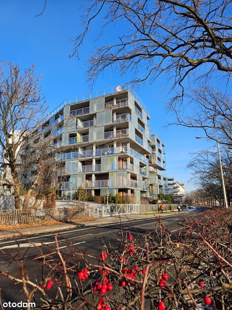 Wynajmę nowoczesne mieszkanie o powierzchni 47 m², położone we Wrocławiu przy ul. Na Polance, tuż nad rzeką. Lokal składa się z przestronnego salonu z aneksem kuchennym, sypialni, przedpokoju oraz łazienki. Z każdego pokoju znajduje się wyjście na duży balkon z pięknym widokiem na rzekę.