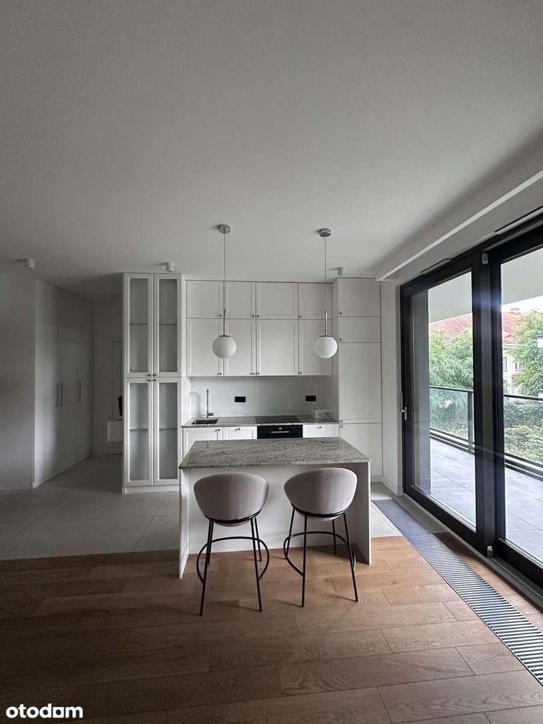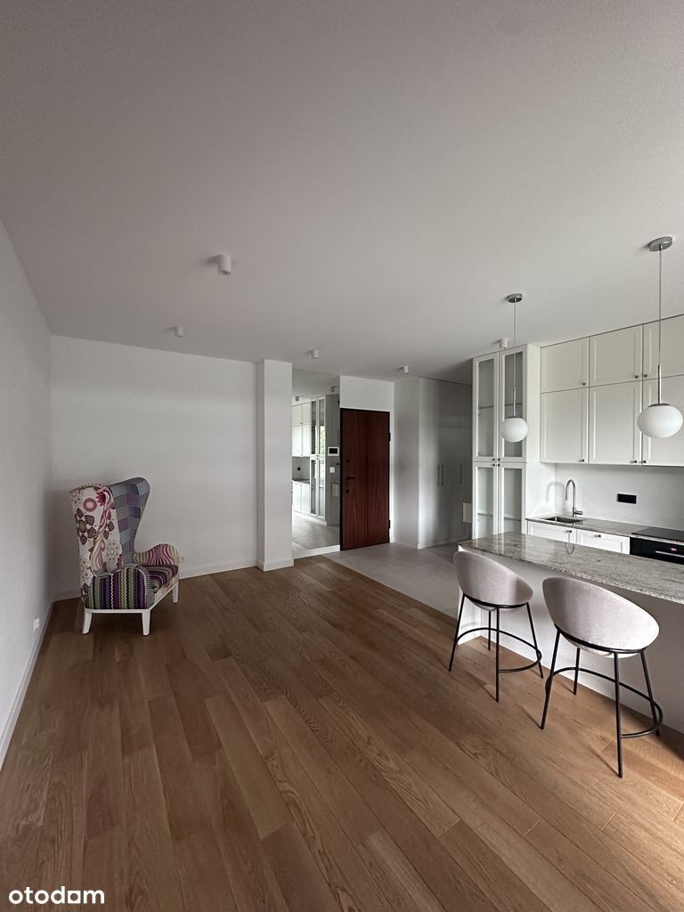 Wynajmę BEZPOŚREDNIO dwupokojowy apartament wykończony w wysokim standardzie. Sypialnia, salon z kuchnią, łazienka i balkon. Mieszkanie wyposażone jest w klimatyzację. Do mieszkania przynależny miejsce postojowe w garażu podziemnym. Apartament znajduje się w "Rezydencji Iwicka" - budynek z całodobową ochroną, parkingiem podziemnym oraz pokojem klubowym dla mieszkańców. Idealna lokalizacja w sercu Dolnego Mokotowa, w okolicy liczne placówki edukacyjne oraz parki. Park Łazienkowski jest oddalony o 15 minutowy spacer. W budynku znajduje się Żabka, paczkomat, a restauracje są oddalone o kilka minut.