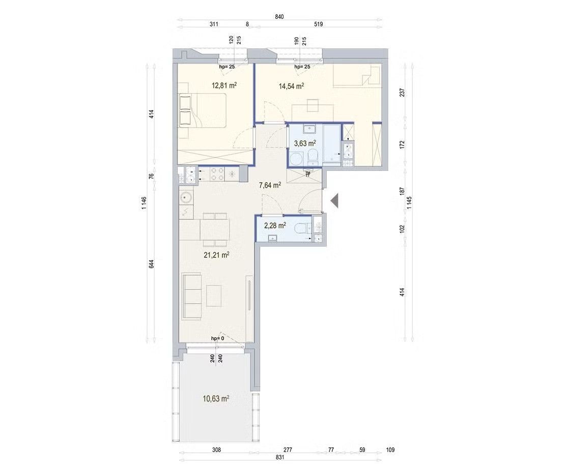 - 77 m²