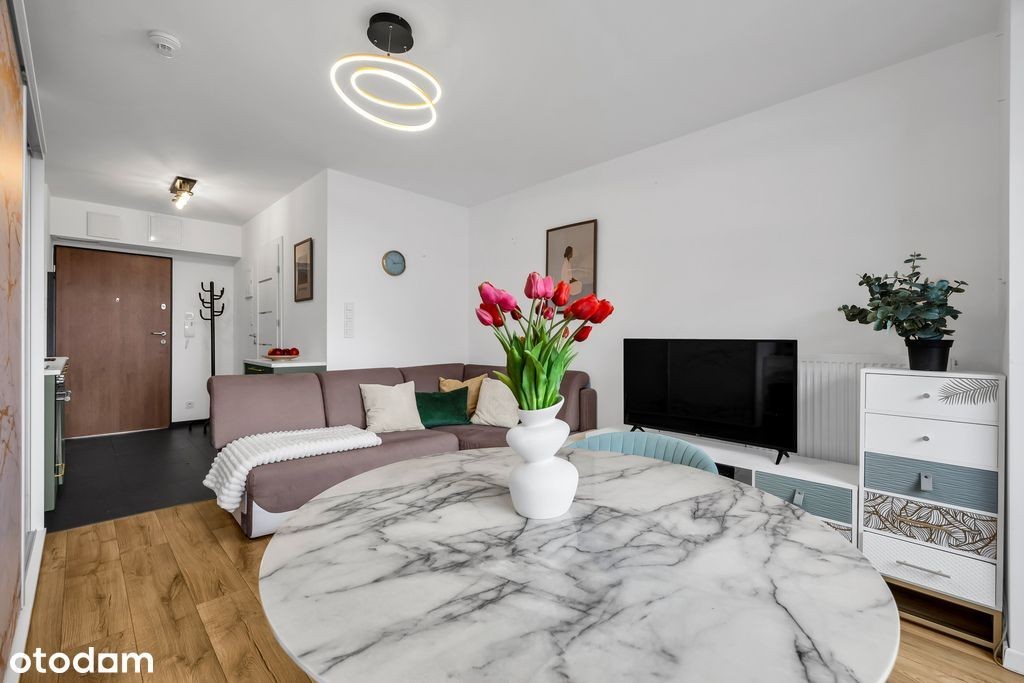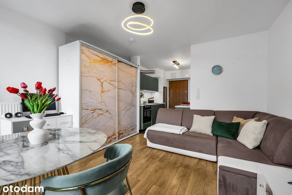 Mikroapartament z charakterem, balkonem i tarasem widokowym Jeśli lubisz, gdy wszystko masz pod ręką - a jeszcze lepiej, gdy to wszystko jest ładne, funkcjonalne i pachnie nowością - to ten mikroapartament może być Twoim nowym adresem w Warszawie. Albo Twoją inwestycją, która zacznie zarabiać szybciej, niż zdążysz powiedzieć wynajęte!. Mała przestrzeń, wielki potencjał W nowoczesnym budynku z 2021 roku czeka mieszkanie - kompaktowe, ale zaprojektowane z pomysłem. Wchodzisz i od razu czujesz, że tu wszystko ma swoje miejsce: (od zmywarki po piekarnik), a w salonie strefa wypoczynku z telewizorem, który tylko czeka na pierwszy maraton serialowy. Z salonu wychodzisz na, gdzie znajdziesz sprytny schowek - idealny na rower, walizki lub sezonowe gadżety, które zazwyczaj nie mają gdzie mieszkać. Do apartamentu przynależy także w garażu podziemnym, położone tuż przy windzie (dodatkowo płatne). Budynek, który ma wszystko Nowoczesna architektura, (tak, odbiorą Twoją paczkę, gdy akurat jesteś w pracy), zadbane części wspólne oraz wspólny na 10. piętrze - z panoramą Warszawy, która potrafi skraść serce. Idealne miejsce na poranną kawę, wieczorne wino lub po prostu chwilę wytchnienia z widokiem na miasto. Gocławek - spokojny rytm z szybkim dostępem do centrum Lokalizacja to połączenie miejskiego komfortu z odrobiną natury. Tuż obok znajdziesz, które błyskawicznie przeniosą Cię do centrum, na uczelnię czy do biura. A kiedy zapragniesz zakupów lub kawy na wynos - King Cross Praga, lokalne sklepy i restauracje są dosłownie za rogiem. Na spacery i aktywny odpoczynek zapraszają pobliskie tereny zielone: Park Znicza czy okolice Kanału Nowa Ulga. To jedna z tych dzielnic, które potrafią zaskoczyć - spokojem, przestrzenią i coraz nowocześniejszym klimatem. Dlaczego warto? Mikroapartament, który udowadnia, że małe może znaczyć zorganizowane, stylowe i gotowe do życia. A compact apartment with character, a balcony, and a rooftop terrace If you like having everything within reach - and even better, when it's stylish, functional, and smells brand new - this micro-apartment might just become your new address in Warsaw. Or your next investment - one that starts earning before you can even say rented! Small space, big potential In a modern 2021 building, you'll find a move-in-ready apartment - compact, yet cleverly designed. Step inside, and you'll immediately feel that everything has its place: a built-in kitchen, full set of appliances (from dishwasher to oven), and a cozy living area with a TV already waiting for your first movie marathon. From the living room, you can step out onto the balcony, where you'll discover a smart storage nook - perfect for a bike, suitcase, or seasonal items that usually don't have a home. The apartment also includes an underground parking space, conveniently located right next to the elevator (available for an additional fee). A building that has it all Contemporary architecture, 24/7 security and reception (yes, they'll pick up your package when you're at work), well-maintained common areas, and a shared rooftop terrace on the 10th floor - offering a breathtaking panorama of Warsaw. It's the perfect spot for your morning coffee, evening glass of wine, or simply a quiet moment to enjoy the city view. Gocławek - calm rhythm with quick access to the city center This location combines urban comfort with a touch of nature. Right nearby, you'll find tram and bus terminals that get you downtown, to your university, or the office in no time. Craving coffee or shopping? King Cross Praga, as well as local stores and restaurants, are just around the corner. For walks or outdoor relaxation, head to Znicz Park or the green areas along the Nowa Ulga Canal. It's one of those districts that surprise you - peaceful, spacious, and with a modern vibe that keeps growing. Why it's worth it- Modern building (2021) with security and reception - Rooftop terrace with a panoramic city view - Balcony with storage - Fully furnished and equipped - Underground garage next to the elevator - Excellent transport links to the city center and univer