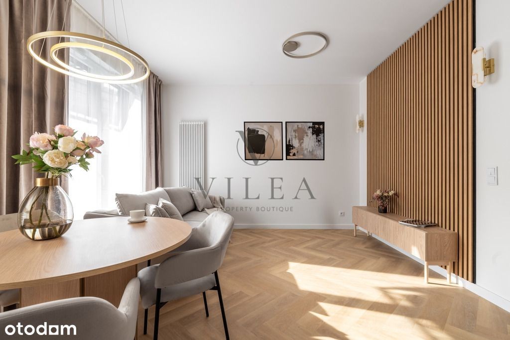 Całkowicie nowe, nigdy nie zamieszkałe mieszkanie z ogródkiem, położone w biznesowej części Mokotowa przy ul. Domaniewskiej. Ogromnym atutem jest osobne i niezależne wejście bezpośrednio z patio, zapewniające bezpieczeństwo i prywatność. MIESZKANIE Na 2-pokojowe mieszkanie o powierzchni 45,41 m2 składają się: - Jasny salon z wyjściem na taras / ogródek, - Aneks kuchenny w pełni wyposażony w sprzęt AGD, - Sypialnia - Elegancka łazienka z wanną - Hol z miejscem na szafę w zabudowie Mieszkanie całkowicie nowe, jasne, wykończone nowocześnie i w wysokim standardzie. Ciepłe, przyjemne wnętrze wykończone drewnem i kamieniem naturalnym. Do mieszkania przynależy w garażu podziemnym oraz Czynsz administracyjny płatny dodatkowo. Nowoczesny apartamentowiec w inwestycji Central House z 2023 roku recepcją, ochroną, strefą relaksu dla dorosłych, sauną, siłownią i strefą fitness. Na dachu znajduje się taras do wyłącznego użytku mieszkańców. Na terenie inwestycji znajduje się także plac zabaw dla dzieci, a także sklep Żabka umożliwiający szybkie zakupy. Inwestycja Central House dewelopera Okam mieści się w samym sercu biznesowej części Mokotowa przy ul. Domaniewskiej 47A. Oprócz biurowców i siedziby wielu znanych firm, w bliskim sąsiedztwie znajduje się galeria handlowa Westfield Mokotów, stacje metra Wierzbno i Wilanowska, a szybką komunikację ułatwiają też przystanki autobusowe zlokalizowane przy budynku. Jako agencja nieruchomości pobieramy wynagrodzenie w formie prowizji za wykonaną usługę pośrednictwa. Bierzemy odpowiedzialność za bezpieczeństwo transakcji, doradzamy, pomagamy w załatwianiu formalności. Niniejsze ogłoszenie pełni funkcję informacyjną i nie stanowi oferty handlowej w rozumieniu przepisów Kodeksu Cywilnego. located in the business part of Mokotów at ul. Domaniewska. The 2-room apartment with an area of 45.41 m2 consists of: - Bright living room with access to the terrace/garden, - Kitchenette fully equipped with high-class household appliances, - Bedroom - Elegant bathroom with bathtub - Hall with space for a built-in wardrobe The apartment is completely new, bright, modernly finished and to a high standard. Warm, pleasant interior finished with wood and natural stone. The apartment includes in the underground garage and A modern apartment building in the Central House investment from 2023 with a reception, security, relaxation area for adults, sauna, gym and fitness area. On the roof there is a terrace for the exclusive use of residents. On the premises of the investment there is also a playground for children, as well as a Żabka store enabling quick shopping. The Central House investment by Okam developer is located in the heart of the business part of Mokotów at ul. Domaniewska 47A. In addition to office buildings and the headquarters of many well-known companies, in the immediate vicinity there is the Westfield Mokotów shopping mall, Wierzbno and Wilanowska metro stations, and quick communication is also facilitated by bus stops located next to the building. located in the business part of Mokotów at ul. Domaniewska. The 2-room apartment with an area of 45.41 m2 consists of: - Bright living room with access to the terrace/garden, - Kitchenette fully equipped with household appliances, - Bedroom - Elegant bathroom with bathtub - Hall with space for a built-in wardrobe The apartment is completely new, bright, modernly finished and to a high standard. Warm, pleasant interior finished with wood and natural stone. The apartment includes in the underground garage and A modern apartment building in the Central House investment from 2023 with a reception, security, relaxation area for adults, sauna, gym and fitness area. On the roof there is a terrace for the exclusive use of residents. On the premises of the investment there is also a playground for children, as well as a Żabka store enabling quick shopping. The Central House investment by Okam developer is located in the heart of the business part of Mokotów at ul. Domaniewska 47A. In addition to office buildings and the headquarters of many well-known companies, in the