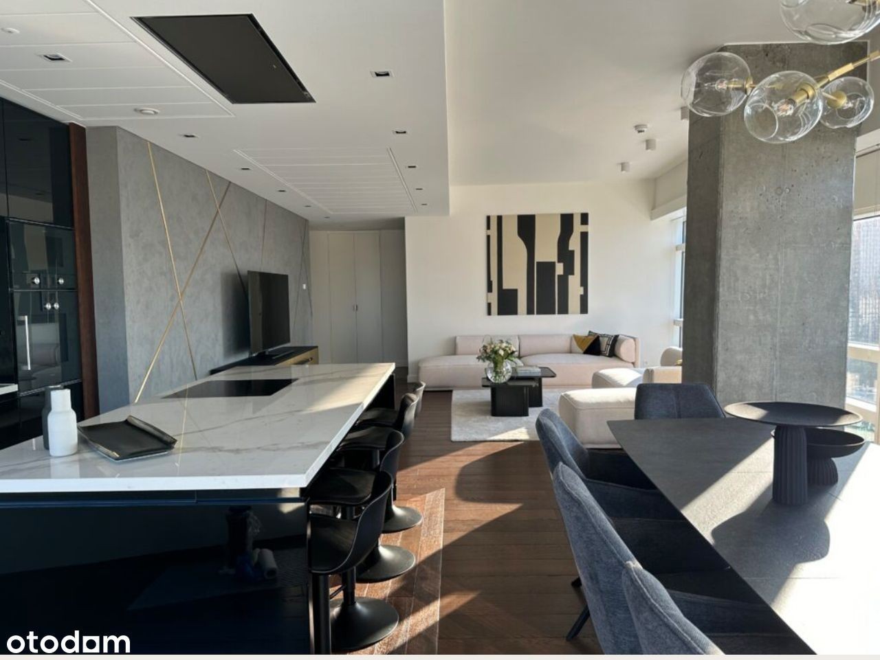 Elegancki apartament o powierzchni 121 m², położony na 23 piętrze prestiżowego wieżowca Złota 44. Wnętrze składa się z salonu z aneksem kuchennym, komfortowych sypialni i eleganckich łazienek z wanną i prysznicem. Apartament został wykończony z dbałością o detale - wysokiej jakości materiały, designerskie meble i stonowana kolorystyka z akcentami.
