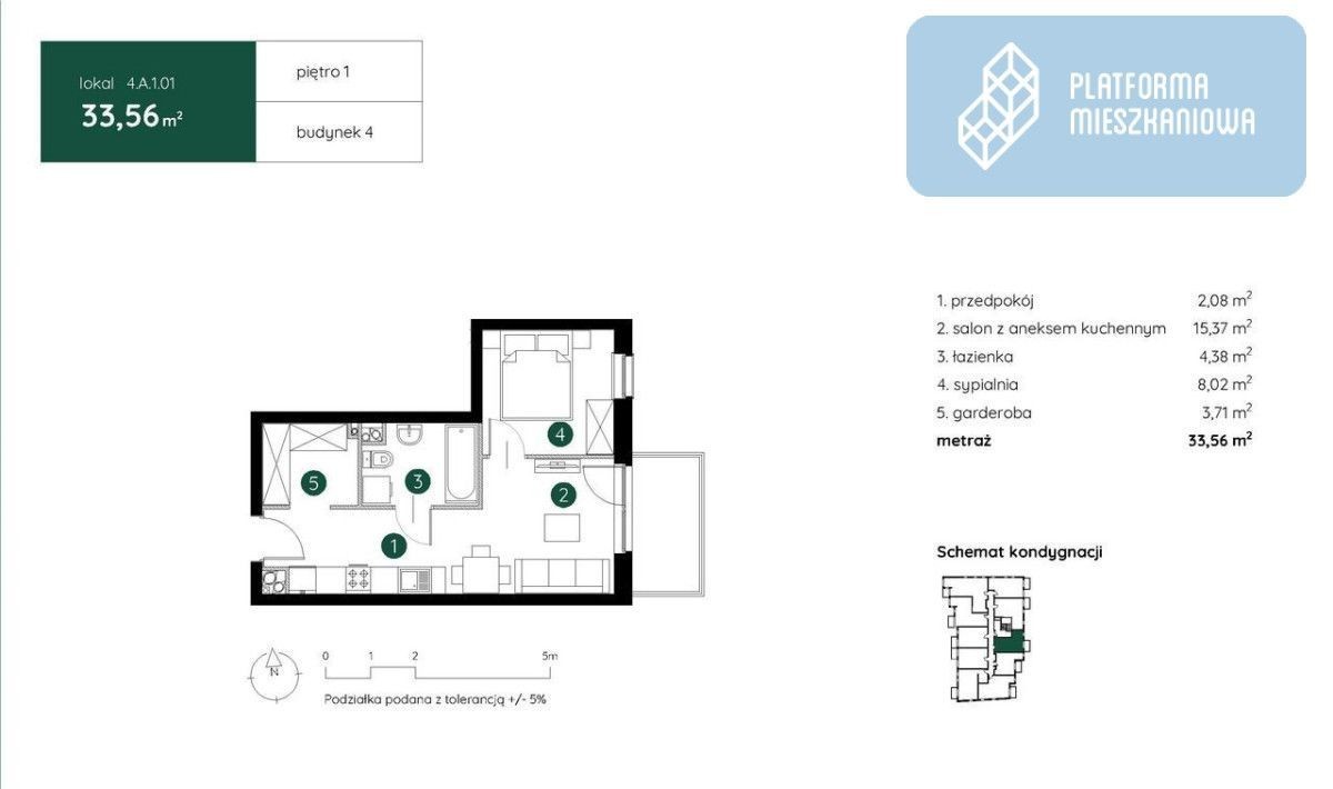 FUNKCJONALNY UKŁAD ! Mieszkanie 2- pokoje / garderoba/ balkon / miejsce postojowe. Salon z aneksem kuchennym 15.37 m2 Pokój 8.02 m2 Łazienka 4.38 m2 Garderoba 3.71 m2 Przedpokój 2.08 m2 Balkon Komórka lokatorska Cena miejsca postojowego w garażu podziemnym od 80.000 zł BRUTTO
