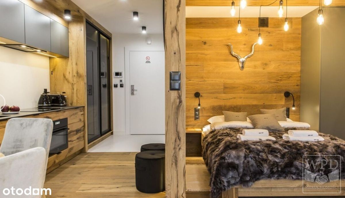 OFERTA BIURA WPD NIERUCHOMOŚCI TEL: Skontaktuj się 0 % Prowizji od Kupującego ! Luksusowy kompleks Rezydencja Zakopiańska został wybudowany w 2018 roku na ul. Skibówki. Doskonała lokalizacja, sprawia, że z łatwością można korzystać z licznych atrakcji turystycznych. Nieopodal, na ulicy Kościeliskiej zachwyci Państwa wspaniała i zabytkowa architektura podhalańska, a popularne Krupówki oddalone od obiektu o 13 minut spacerem zauroczą znakomitymi restauracjami i galeriami sztuki regionalnej. Zwolennicy białego szaleństwa mogą w 5 minut samochodem dotrzeć na stok narciarski na urokliwej Polanie Szymoszkowej, gdzie w pobliżu znajduje się również kąpielisko termalne. Znakomity Aquapark Zakopane oddalony jest od Apartamentu o 18 minut spacerem. Położony niemal przy kompleksie przystanek komunikacji lokalnej ułatwi wycieczki do okolicznych miejscowości, by poznawać niesamowitą kulturę Podhala. Biegnące nieopodal szlaki turystyczne przez malownicze doliny, między innymi pięknej Strążyskiej i Drogi Pod Reglami zachęcają do wycieczek w Tatry Zachodnie.