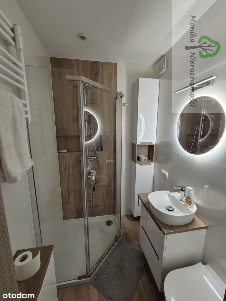 Bardzo atrakcyjne dwupokojowe mieszkanie o pow. 50,56 m2, usytuowane na I piętrze czterokondygnacyjnego bloku w Tczewie przy ul. Rokickiej. Mieszkanie składa się z: - Salon z aneksem kuchennym z zabudową na wymiar i sprzętem AGD oraz duży balkon z widokiem na plac zabaw. - drugi pokój z łóżkiem małżeńskim i szafą - łazienka z kabiną prysznicową - przedpokój z szafą typu komandor oraz zabudowana szafą wnęka, w której mieści się pralka. Łazienka z wc oraz drugi pokój.