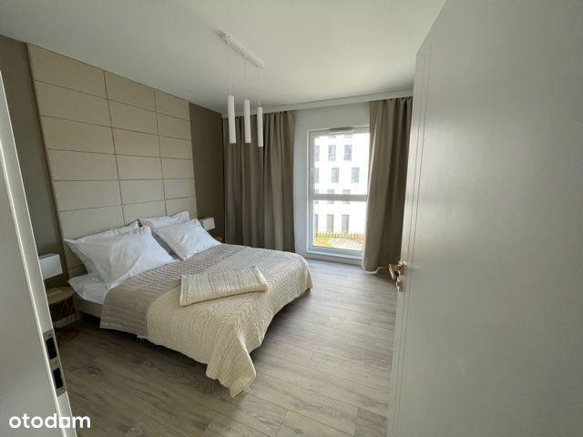 Wynajmę prestiżowy zupełnie nowy apartament który znajduje się w Gdyni przy ul. Legionów. Apartament składa się z : salonu z aneksem kuchennym, dwóch sypialni, garderoby, łazienki, osobnej toalety, oraz dużego tarasu z pięknym widokiem na panoramę Gdyni oraz częściowym widokiem na morze.