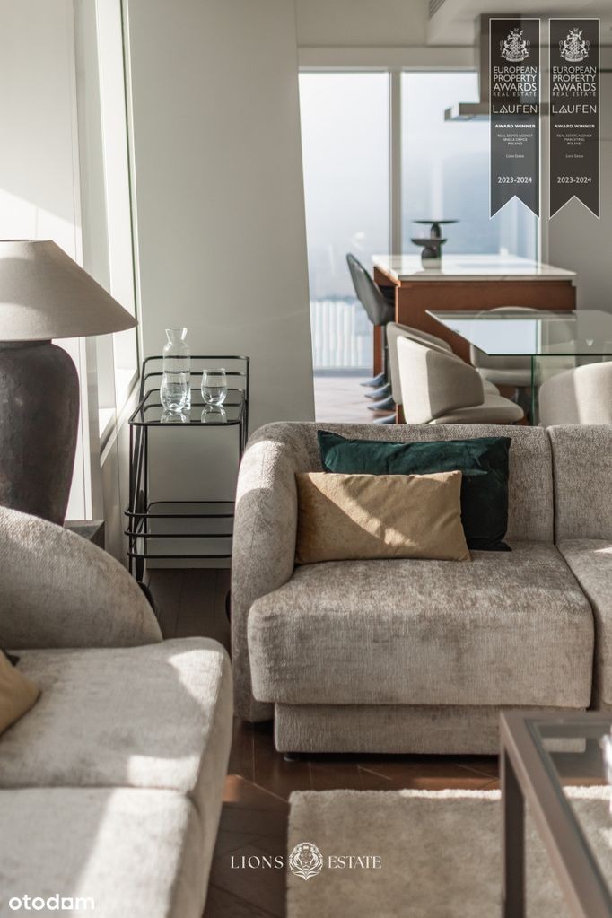 Gotowy do wprowadzenia, ekskluzywny apartament w chmurach. Apartament: Apartament o powierzchni 160 m² obejmuje przestronny, dobrze oświetlony salon połączony z otwartą kuchnią, główną sypialnię typu master z prywatną łazienką i garderobą, dodatkową sypialnię, gabinet oraz łazienkę gościnną. Całość dopełnia szeroki korytarz, zapewniający wygodny dostęp do każdego pomieszczenia. Lokal jest w pełni wyposażony, wykończony w wysokim standardzie i gotowy do natychmiastowego zamieszkania. Mieszkańcy Złotej 44 mają do dyspozycji luksusową strefę rekreacyjną o powierzchni 1400 m², gdzie znajdują się 25-metrowy basen, przestronna siłownia, dwie sauny (sucha i parowa), jacuzzi z widokiem na Pałac Kultury, ogród o powierzchni 800 m², strefa relaksu, sale konferencyjne, piwnice na wina oraz prywatne kino z symulatorem golfa. Z okien apartamentu rozciąga się imponujący widok na warszawskie centrum. Złota 44 to luksusowy apartamentowiec zlokalizowany w jednej z najbardziej prestiżowych części Warszawy, w samym centrum miasta, obok Pałacu Kultury i Nauki. Budynek znajduje się zaledwie kilka kroków od stacji pierwszej linii metra, co gwarantuje szybki i wygodny dojazd do dalszych części miasta. Niedaleko znajduje się również stacja drugiej linii metra, która łączy obie strony Wisły, umożliwiając mieszkańcom łatwy dostęp do takich miejsc jak Nowy Świat, Powiśle czy prawobrzeżne rejony stolicy. Mieszkańcy Złotej 44 mogą korzystać z doskonale zorganizowanej okolicy, obfitującej w liczne atrakcje kulturalne i kulinarne. Bogata oferta udogodnień, jakie zapewnia ten kompleks, znacząco podnosi komfort życia jego lokatorów. Zapierające dech widoki oraz starannie zaprojektowane detale wnętrz zachwycą każdego, kto zdecyduje się na zamieszkanie w tym wyjątkowym miejscu i uczyni Złotą 44 swoim domem. This 160 m² apartment features a spacious, well-lit living room connected to an open kitchen, a master bedroom with an en-suite bathroom and walk-in closet, an additional bedroom, office, guest bathroom, and a wide hallway providing convenient access to each room. The apartment is fully furnished, finished to a high standard, and ready for immediate move-in. Residents of Złota 44 enjoy access to a luxurious 1,400 m² recreation area with a 25-meter pool, a spacious gym, two saunas (dry and steam), a jacuzzi overlooking the Palace of Culture, an 800 m² garden, relaxation area, conference rooms, wine cellars, and a private cinema with a golf simulator. The apartment's windows offer breathtaking views of Warsaw's city center. Złota 44 is a luxury residential tower located in one of the most prestigious parts of Warsaw, right in the city center, next to the Palace of Culture and Science. The building is just steps away from the first metro line station, ensuring quick and convenient access to more distant parts of the city. The second metro line station is also within a short walking distance, connecting both sides of the Vistula River and allowing residents easy access to destinations such as Nowy Świat, Powiśle, and the Praga district. Residents of Złota 44 benefit from a well-organized neighborhood, rich in cultural and culinary attractions. The wealth of amenities offered by this complex significantly enhances the quality of life for its residents. Stunning views and meticulously designed interior details are sure to impress anyone who chooses to call Złota 44 home. This 160 m² apartment features a spacious, well-lit living room connected to an open kitchen, a master bedroom with an en-suite bathroom and walk-in closet, an additional bedroom, office, guest bathroom, and a wide hallway providing convenient access to each room. The apartment is fully furnished, finished to a high standard, and ready for immediate move-in. Residents of Złota 44 enjoy access to a luxurious 1,400 m² recreation area with a 25-meter pool, a spacious gym, two saunas (dry and steam), a jacuzzi overlooking the Palace of Culture, an 800 m² garden, relaxation area, conference rooms, wine cellars, and a private cinema with a golf simulator. The apartment's windows offer breathtaking