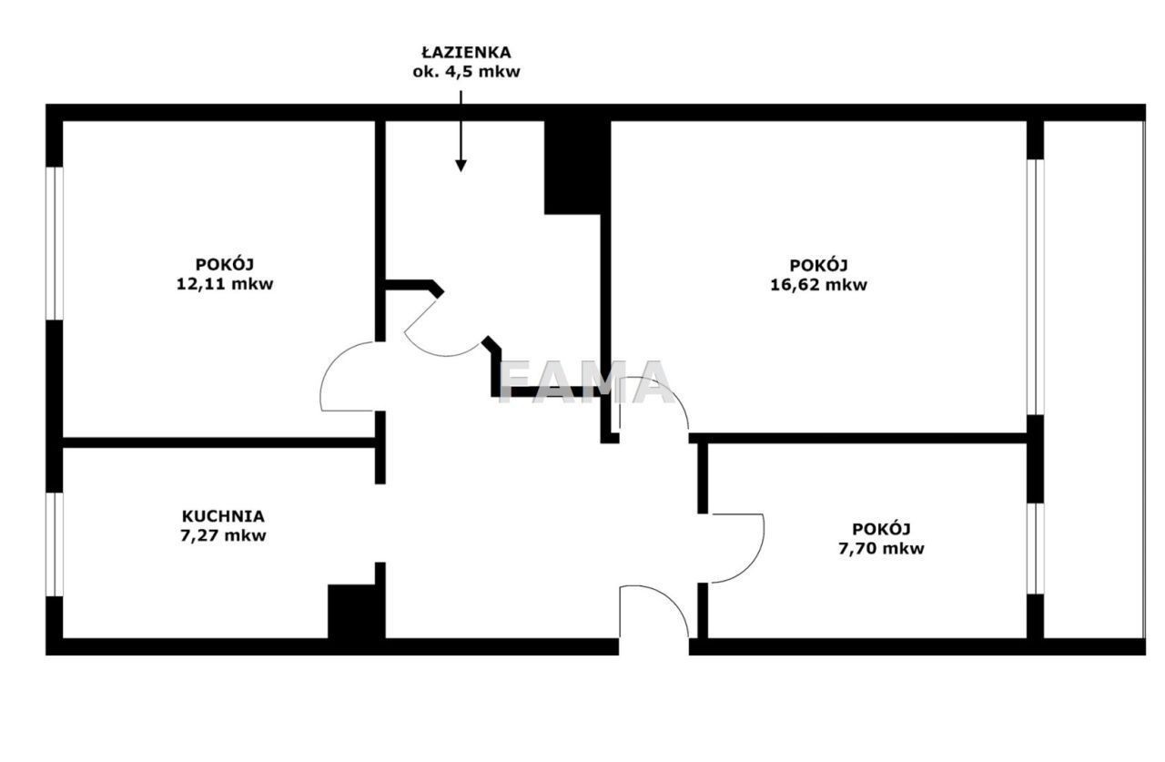 Mieszkanie 3-pokojowe o powierzchni 60,10 mkw, położone na 3. piętrze bloku 4-piętrowego, na Osiedlu Południe Jednostka E, we Włocławku - spółdzielcze własnościowe prawo do lokalu, z założoną księgą wieczystą, z dużym balkonem loggią - na długości dwóch pokoi, dwustronne, jasne, przestrzenne, duży pokój o powierzchni 16,62 mkw, mniejszy 12,11 mkw, najmniejszy 7,70 mkw, kuchnia o powierzchni 7,27 mkw + duża łazienka z WC, przedpokój.