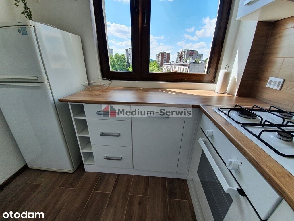 Do wynajęcia atrakcyjne mieszkanie w Kielcach przy ul. Konarskiego. Mieszkanie składa się z dwóch pokoi, widnej kuchni oraz łazienki o łącznej powierzchni 35,90 mkw. Mieszkanie po remoncie (nowe panele, ściany wygipsowane i pomalowane). W kuchni nowa zabudowa meblowa, płyta gazowa z piekarnikiem, pochłaniacz, lodówka. W salonie stolik, krzesła, łóżko (szer. 90 cm), szafka nocna. W sypialni duża szafa, komody, biurko, regał na książki. W łazience wanna, umywalka, wc oraz pralka. W przedpokoju szafa w zabudowie. Na podłogach w łazience i kuchni terakota, w pokojach panele. Możliwość uzupełnienia wyposażenia pod potrzeby najemcy. W mieszkaniu balkon typu loggia. Mieszkanie w bardzo dobrym stanie, widne, słoneczne. Cena 1500 zł+ ok. 450 zł czynsz+ media (prąd, gaz) + kaucja gwarancyjna zwrotna Najchętniej najem okazjonalny. Jeśli zainteresowało Cię to ogłoszenie zadzwoń