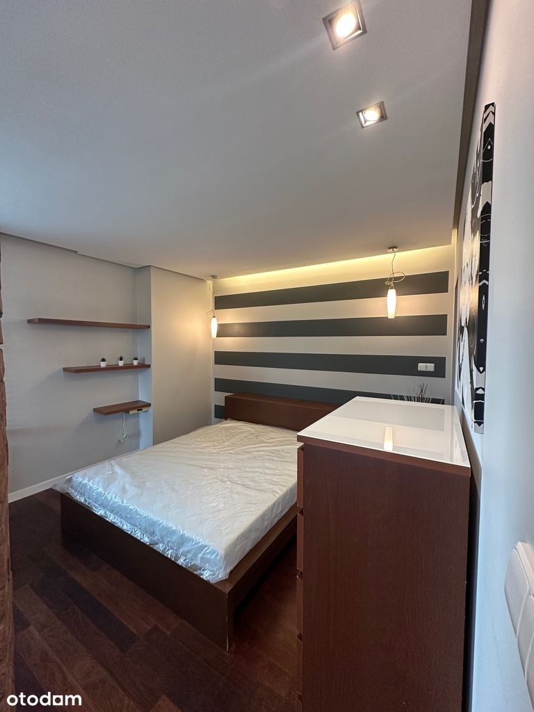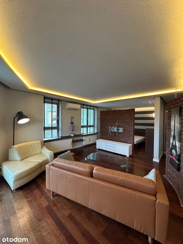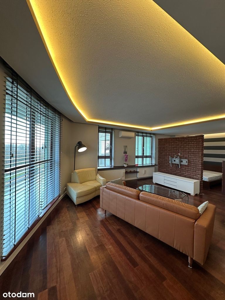 Mieszkanie do wynajęcia w bloku przy Kępie Potockiej, składające się z pokoju dziennego z aneksem kuchennym i aneksu sypialnianego (oddzielonego od pokoju ścianką z cegły ). Mieszkanie jest wykończone w wysokim standardzie i wyposażone w płytę indukcyjną, piekarnik, zmywarkę, pralkę i klimatyzację. Wyjątkowa lokalizacja przy parku Kępa Potocka a zarazem świetnie skomunikowana. Pod blokiem znajduje się przystanek autobusowy a najbliższa stacja metra - na Placu Wilsona.