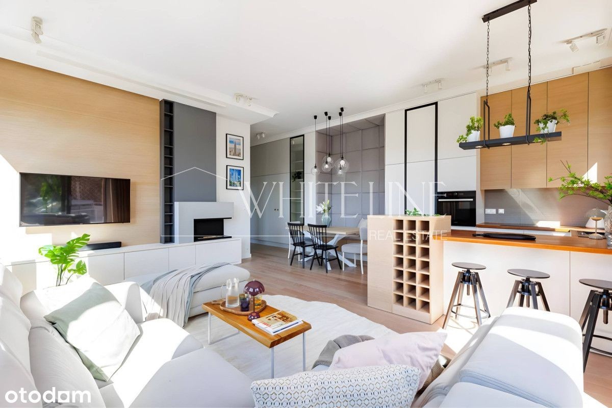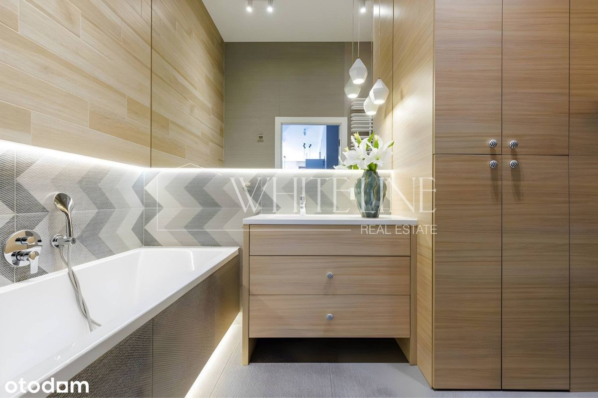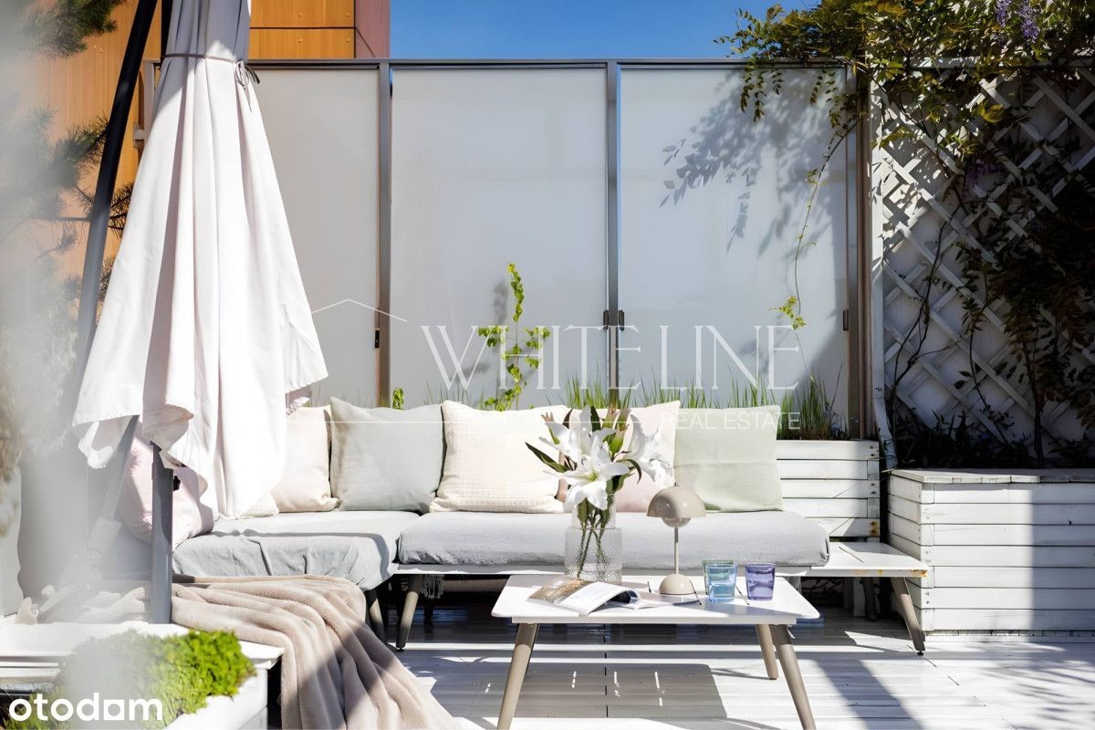 Ekskluzywny penthouse z tarasem | Miasteczko Wilanów | ul. Sarmacka 4A Na wynajem wyjątkowy penthouse z prywatnym, słonecznym tarasem, zaprojektowany z najwyższą dbałością o jakość, funkcjonalność oraz komfort codziennego życia. Apartament oferuje dużą ilość miejsca do przechowywania, przemyślany układ oraz poczucie prywatności. Nieruchomość jest w pełni urządzona i wyposażona - gotowa do wprowadzenia od W skład apartamentu wchodzą: • przestronny salon z dużą narożną sofą, biokominkiem (naturalny ogień - idealny klimat na jesienne i zimowe wieczory) oraz bezpośrednim wyjściem na taras 36m2 • nowoczesna, funkcjonalna kuchnia z wysokiej klasy sprzętem AGD, wyspą kuchenną oraz ogrzewaną podłogą • sypialnia master z wygodnym łóżkiem i prywatną łazienką z prysznicem • druga sypialnia (idealna jako pokój dziecięcy lub gabinet) z zabudowaną szafą • łazienka z wanną i ogrzewaną podłogą • hol z pojemnymi szafami w zabudowie Dodatkowym atutem jest przestronny taras o powierzchni 36 m², będący naturalnym przedłużeniem salonu w sezonie letnim. Taras jest w pełni zagospodarowany: meble tarasowe, duży stół oraz roślinność z automatycznym systemem podlewania. • wysokość wnętrz ponad 3 metry - poczucie przestrzeni i światła • oświetlenie zaprojektowane przez architekta - możliwość tworzenia różnych nastrojów • rolety antywłamaniowe • ochrona w budynku • bardzo duża ilość szaf w zabudowie • 2 miejsca postojowe w garażu podziemnym (o ponadstandardowych wymiarach) • czynsz najmu: 8500 PLN • zaliczka na opłaty administracyjne: 1 500 PLN • kaucja: 15 000 PLN • miejsca postojowe w cenie Apartament znajduje się na ostatnim piętrze 4-kondygnacyjnego, nowoczesnego budynku z 2019 roku. Elegancka architektura, jasna elewacja, drewniane okna oraz przestronne, estetycznie wykończone części wspólne. W budynku znajduje się recepcja, a na terenie osiedla dostępne są: plac zabaw oraz siłownia zewnętrzna. Taras ma ekspozycję południowo-zachodnią z widokiem na zielone patio. Spokojna, prestiżowa część Miasteczka Wilanów. W pobliżu Pałac Wilanowski, tereny rekreacyjne (Powsin, Natolin), restauracje, kawiarnie, sklepy oraz renomowane placówki edukacyjne - w tym Szkoła Niemiecka i Academeia (walking distance). Doskonała komunikacja: tramwaje i autobusy zapewniają szybki dojazd do centrum oraz stacji metra Wilanowska. Zdecydowanie polecam i zapraszam na prezentację.