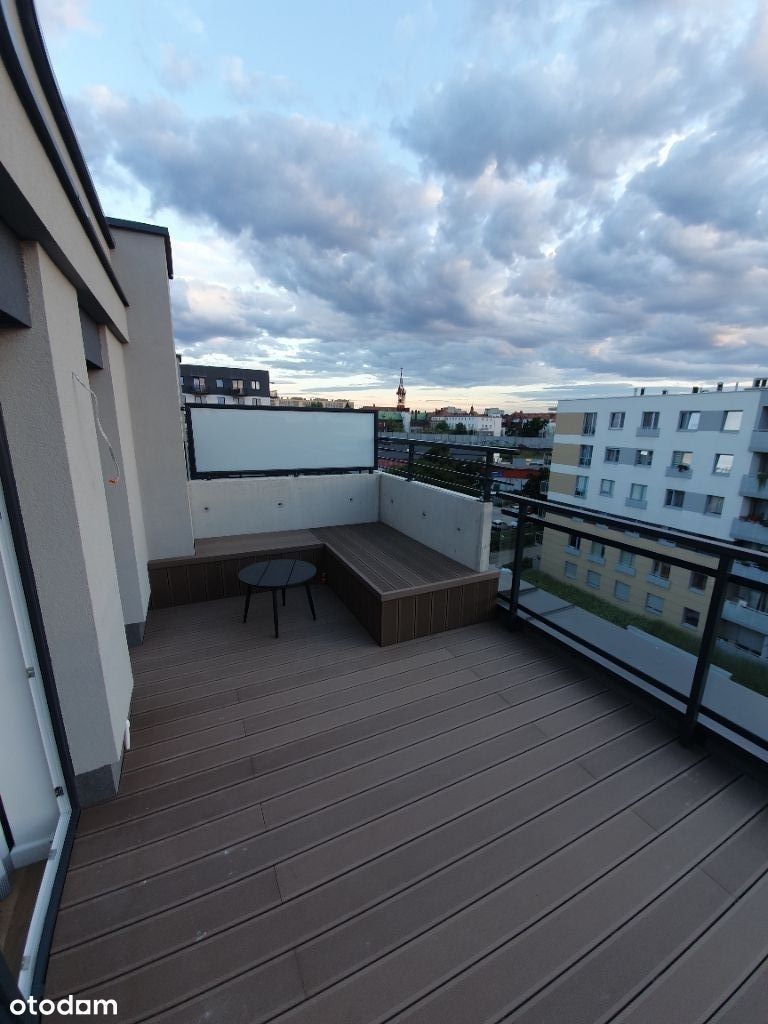 Do wynajęcia 2 pokojowe mieszkanie (38,5 m2) z dużym tarasem i miejscem parkingowym w garażu podziemnym położone w centrum Wrocławia w apartamentowcu przy ul. Tęczowej. MIESZKANIE: Mieszkanie znajduje się na 5 piętrze. Wnętrze wykończone wysokiej jakości materiałami, mieszkanie składa się z przedpokoju, sypialni, pokoju z wydzielonym aneksem kuchennym, łazienki oraz dużego tarasu. Jest wyposażone w niezbędne sprzęty: lodówko-zamrażarkę, piekarnik, płytę grzewczą, zmywarkę, okap oraz pralkę. Wyjście na taras z salonu oraz sypialni, w obu tych pomieszczeniach zamontowana klimatyzacja. Do mieszkania przypisane jest miejsce parkingowe w garażu podziemnym - w cenie czynszu.