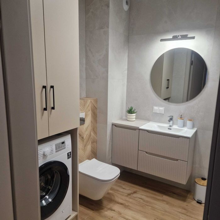 Na wynajem komfortowe umeblowane mieszkanie o powierzchni 65m², zlokalizowane na 2. piętrze nowoczesnego budynku z windą. Mieszkanie składa się z: - przestronnego salonu z aneksem kuchennym wyposażonym w dużą lodówkę, zmywarkę 60, płytę indukcyjną oraz pojemną wyspą, - dwie sypialnie, z których pierwsza posiada łóżko małżeńskie i bardzo pojemną szafą. Druga sypialnia nie została celowo umeblowana. Możliwość aranżacji wedle własnych potrzeb. W zależności od najemcy można w nim urządzić pokój dziecka lub biuro, - łazienka z prysznicem i wanną, koszem na bieliznę, pralkę z szafką w zabudowie, - pomieszczenie gospodarcze co jest dodatkowym miejscem na przechowywanie sprzętu gospodarczego, szafy lub spiżarki. - duży rogowy przestronny balkon, - w bloku dla mieszkańców znajduje się również wózkownia i rowerowania, - własne miejsce parkingowe. Idealna propozycja dla pary lub rodziny bardzo dobra lokalizacja. Na przeciw bloku basen, obok ALDI, blisko do PKP, szkół i przedszkoli. Do czynszu najmu, który wynosi 3500zł, do którego należy doliczyć opłaty: - czynsz administracyjny (w tym zaliczki na centralne ogrzewanie) 816,71 zł - opłaty za śmieci - opłaty za wodę wg zużycia - opłaty za prąd wg zużycia - Internet i telewizję kablową (we własnym zakresie) - Kaucja 3500 zł Mieszkanie dostępne do wynajmu od zaraz - zapraszamy do oglądania kontakt *********
