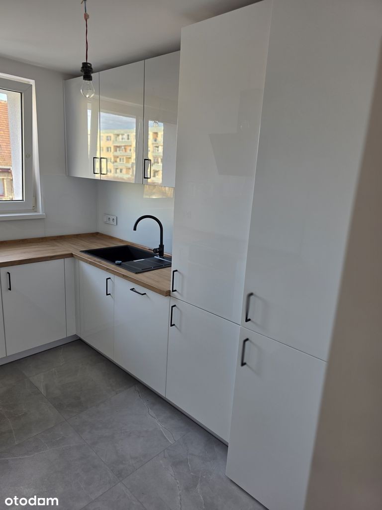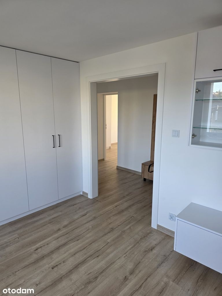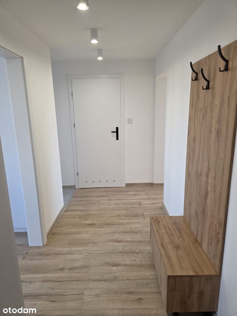 Mieszkanie na wynajem o powierzchni 49 m², usytuowane na drugim piętrze w bloku. Składa się z dwóch pokoi, osobnej kuchni oraz łazienki. Mieszkanie jest świeżo po gruntownym remoncie. Wynienione wszystkie instalacje. Założone nowoczesne centralne ogrzewanie z oszczednym piecem gazowym. Wyposażone w meble oraz sprzęt AGD, w tym pralkę i zmywarkę. Dodatkowym atutem jest balkon oraz piwnica.