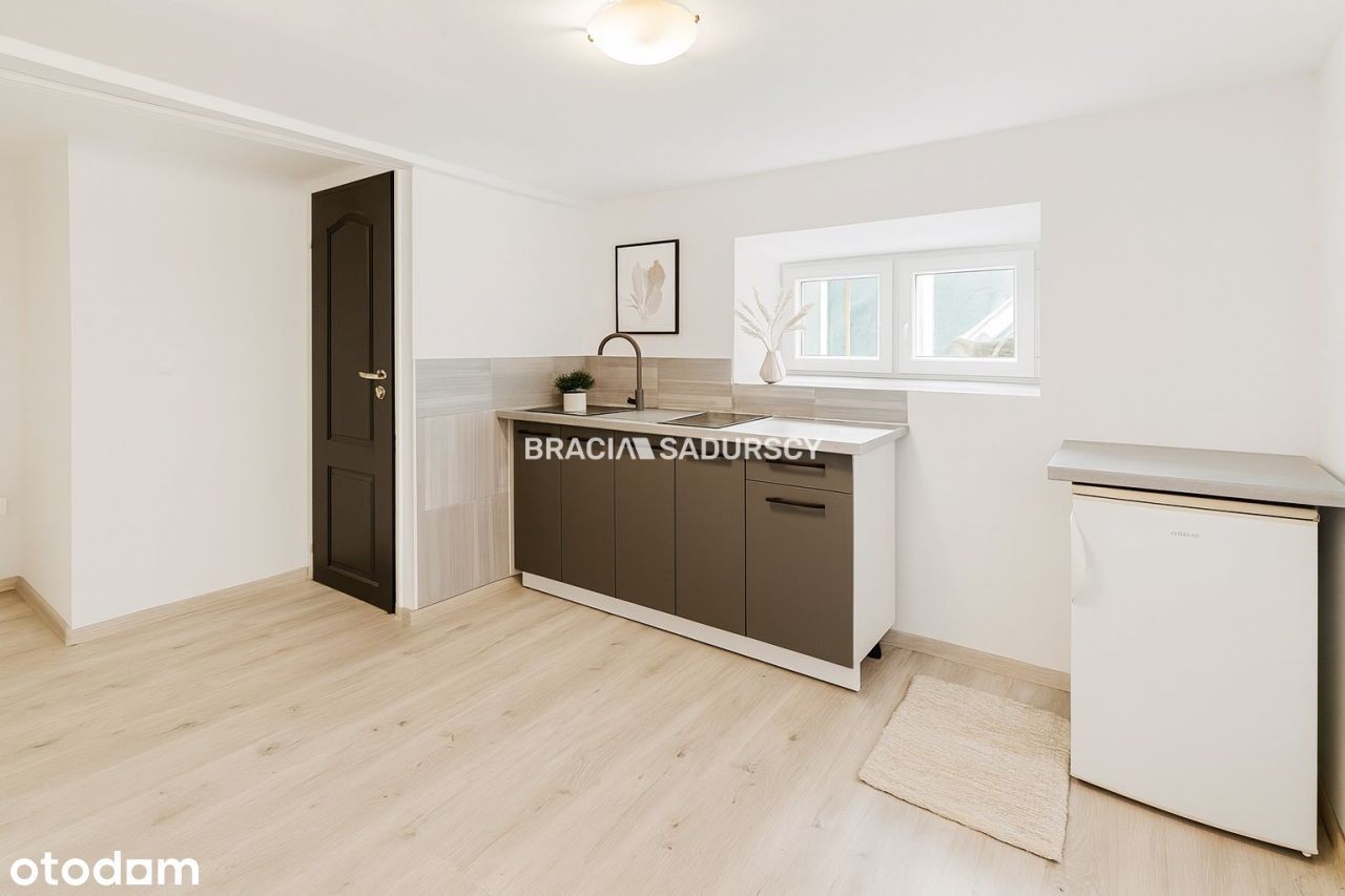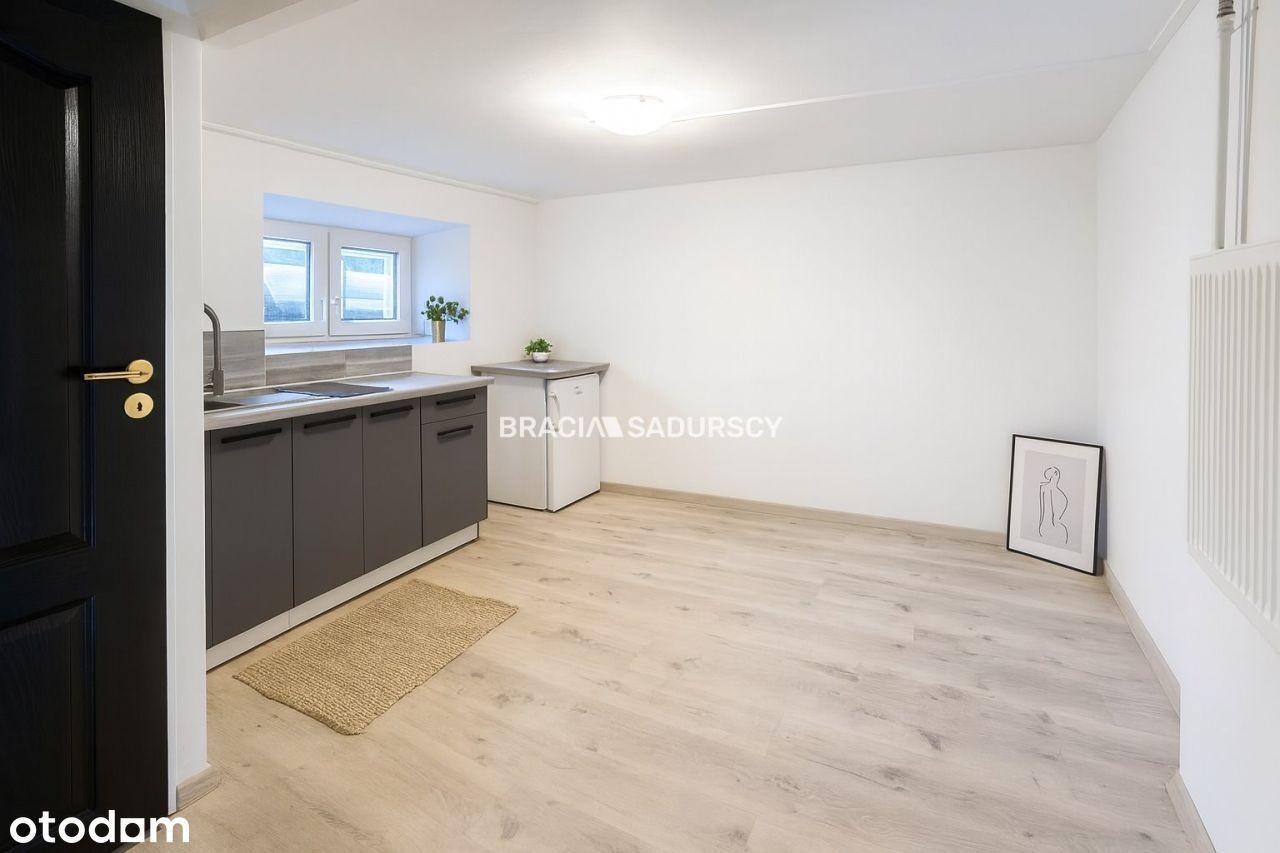 | Do wynajęcia mieszkanie 15,5m2 w małym ogrodzonym budynku z ogrodem. Lokalizacja przy ulicy Bronowickiej. Trzecia linia zabudowy gwarantuję cisze. Komunikacja tramwajowa i autobusowa. W pobliżu wszystkie liczące się uczelnie wyższe. Budynek ogrodzony, świeżo po remoncie generalnym. W kamienicy tylko 4 lokale mieszkalne. Mieszkanie znajduję w przyziemiu domu i składa się z : - pokoju z aneksem kuchennym - łazienki z WC Ekspozycja okienna kuchnia południe. Na oknach rolety zewnętrze. Ogrzewanie miejskie, ciepła woda podgrzewana elektrycznie. Brak gazu. Gotowanie na dwupalnikowej płycie indukcyjnej. Czynsz (ogrzewanie z sieci miejskiej Mpec) okres letni około 60zł, okres zimowy około 300zł. Koszt najmu 1300zł + czynsz+ prąd+ śmieci+ woda Kaucja 2000zł Kontakt: Michał Dzięcioł