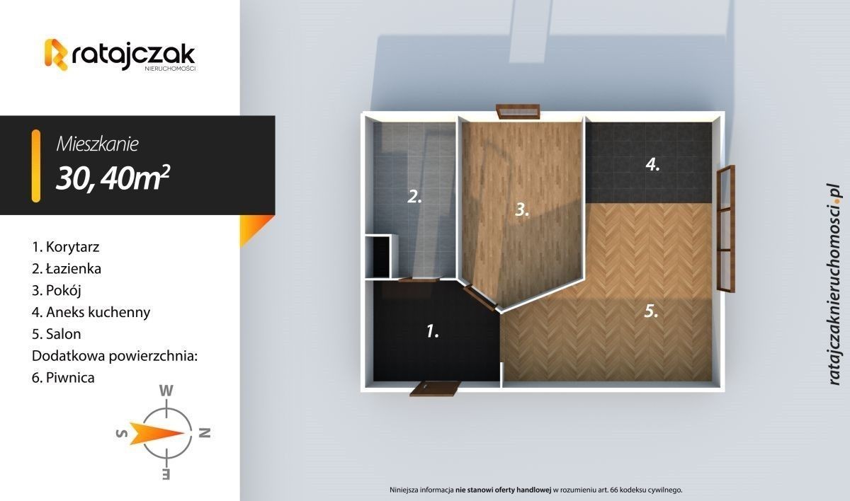 Mieszkanie 2 pokojowe na 1 piętrze, z piwnicą, w Wejherowie Śmiechowie ! MIESZKANIE: Lokum o powierzchni użytkowej, wysokości i ekspozycji zachodnio-północnej składa się z : - salonu z aneksem kuchennym o ekspozycji północnej - niezależnej sypialni o ekspozycji zachodniej - łazienki z prysznicem - przedpokoju z dużą szafą w zabudowie - piwnica 3,50m2 - wszystkie meble w zabudowie oraz część mebli ruchomych (do uzgodnienia) - sprzęt AGD (lodówko-zamrażarka, płyta grzewcza, piekarnik, nowa pralka) Sypialnia wydzielona za pomocą ścianek działowych, przedpokój również : W salonie, pokoju, przedpokoju panele z widocznymi śladami użytkowania, w aneksie kuchennym oraz łazince kafle. W łazience duży 90cm x 90cm prysznic, nowy bojler, 1 ściana wyłożona kaflami, pozostałe wyłożone ściennymi panelami plastikowymi. W sypialni tapety, pod sufitem rozprowadzone ledy. Ogrzewanie elektryczne, aktualnie w mieszkaniu stoi 1 grzejnik przenośny znajdujący się w salonie, woda podgrzewana przez bojler elektryczny. 7 min pieszo do przedszkola Mapeciaki oraz szkoły podstawowej nr6. z wysokiej klasy termo izolacją wybudowany przez szwedzkiego dewelopera "Waza". Ogólny stan budynku należy uznać za bardzo dobry. Pod blokiem obszerny ogólnodostępny parking. W bloku znajduje się hala garażowa (od czasu do czasu istnieje możliwość wynajęcia lub wykupu miejsca postojowego od któregoś z mieszkańców). Stan prawny : (dział III i IV wolny od wpisów) Zarządcą budynku "Turowski & Turowski" Internet światłowodowy 60 dni - termin wydania lokalu, mieszkanie dostępne od zaraz Jeżeli zainteresowało Cię powyższe ogłoszenie to: - Zadzwoń pod wskazany nr tel. - Umów się na Prezentację, - Przyjedź i Obejrzyj na żywo, - Zaproponuj Swoją cenę prezentowanej nieruchomości. Gwarantujemy bezpieczny zakup i najlepszą CENĘ. Oferujemy skuteczną i bezpłatną pomoc w uzyskaniu kredytu. Zapewniamy fachowe doradztwo przy zakupie pod inwestycję. Wszystkie nasze transakcje są objęte ubezpieczeniem OC w PZU. Z nami u Notariusza otrzymasz Ofertę Specjalną. Więcej podobnych ofert znajdziesz na naszej stronie: