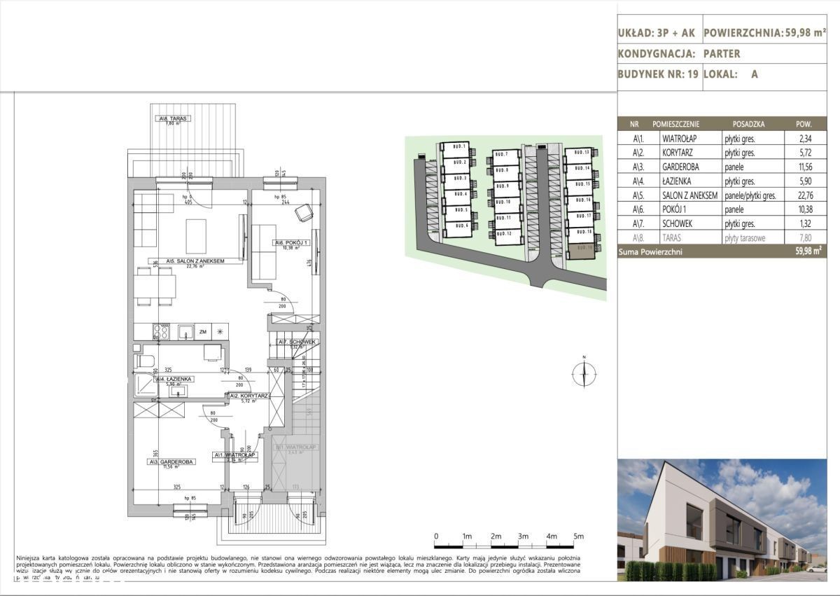 Kolejny etap inwestycji Lwowska Tarasy już w sprzedaży. To zamknięte osiedle budynków niskiej zabudowy szeregowej, dwulokalowej blisko ul. Lwowskiej z bardzo dobrym dojazdem do Rzeszowa. Dostępne są mieszkania: - na parterze z ogrodem, - na 1 piętrze z tarasem na dachu. Do każdego mieszkania przynależy jedno miejsce postojowe przed budynkiem. Lokalizacja zapewnia szybki dojazd do centrum Rzeszowa. Odległość do ronda Pobitno - 3,5 km (5 min) Odległość do rzeszowskiego rynku - 6,3 km (9 min) Odległość do A4 - 10 km (11 min) Odległość do centrum Malawy - 1,4 km (2 min) - ogrzewanie podłogowe na całej powierzchni, - stan deweloperski, - piec gazowy dwufunkcyjny, - miejsce postojowe, - instalacje elektryczne z białym montażem, - instalacje klimatyzacji (bez urządzeń), - zewnętrzna stolarka drzwiowa stalowa, - stolarka okienna sześciokomorowa PCV.